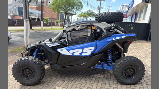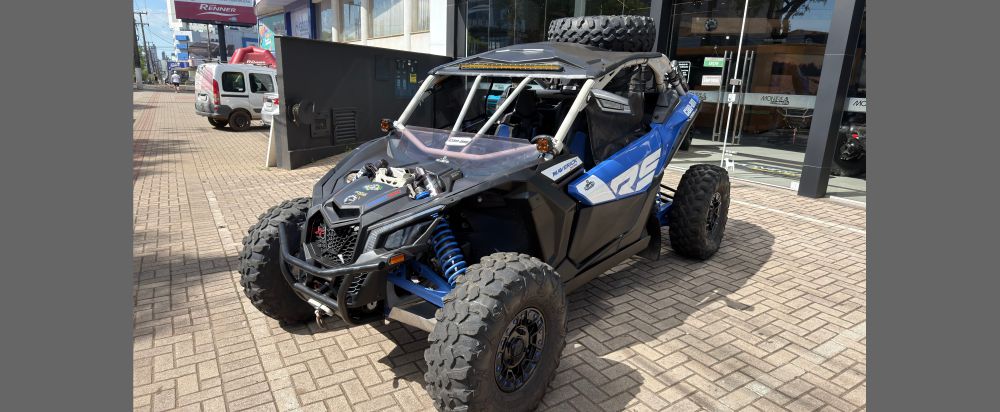 UTV Can-Am Maverick X3 Xrs Turbo RR com suspensão Smart-Shox, ano 2022. Unidade equipada com motor Rotax Turbo de 200 hp, câmbio CVT, direção elétrica, diferencial Smart Lock (bloqueio eletrônico dianteiro), para-choque frontal, guincho elétrico, proteções de bandejas dianteiras, fechamento de portas, meio para-brisa, barra de intrusão frontal, rock slider lateral, pára-pedra traseiro, espelhos laterais, faróis auxiliar em Led, console central, redes laterais de segurança, além de muito mais! Unidade de único dono, com apenas 171 horas/3.805 km rodados. Aproveite esta oportunidade!