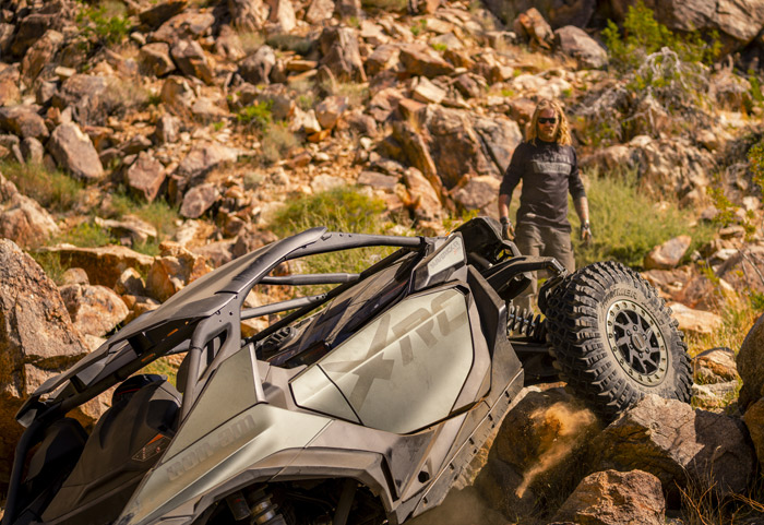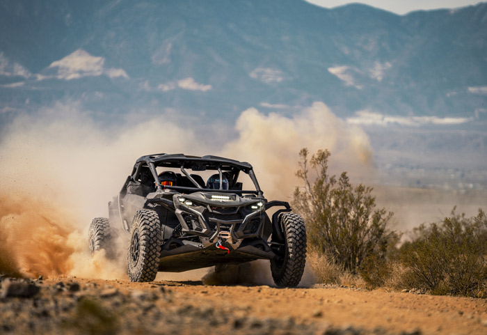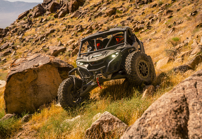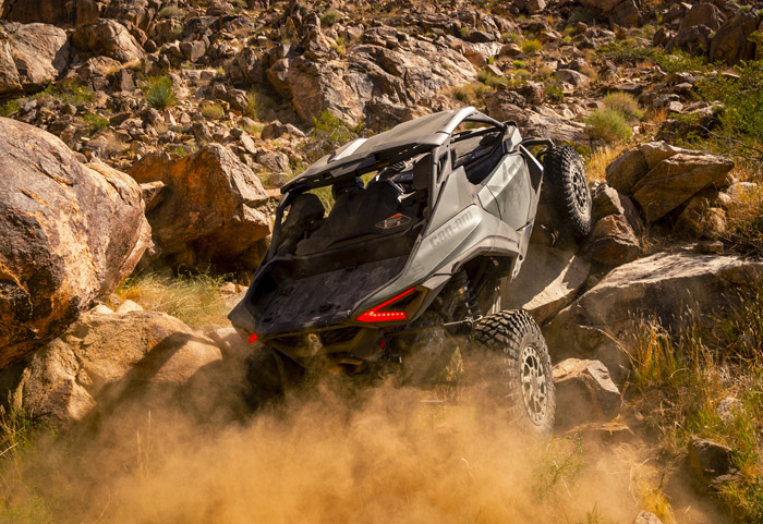 O motor tricilíndrico turboalimentado fornece potência incomparável que você sentirá e ouvirá: são 240 HP de força bruta empurrando essa máquina. Amortecedores FOX PODIUM 2.5 Piggyback com reservatório remoto e bypass e tecnologia Smart-Shox com válvula DDA Gen 3 (compressão e recuperação de válvula dupla). Estabilidade maximizada do veículo para melhor distribuição de carga, melhor altura do centro de rolamento e geometria de direção.